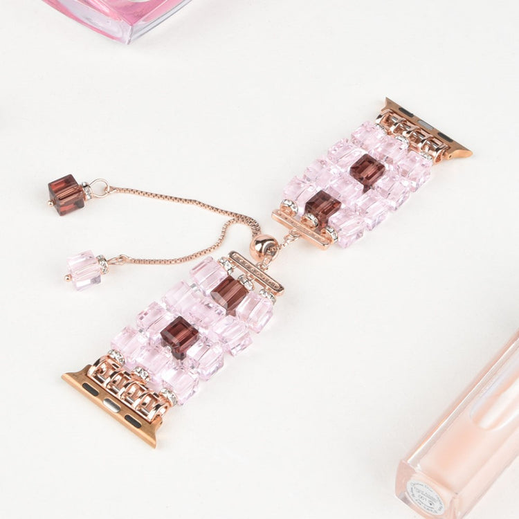 Tervetuloa tutustumaan upeaan Faux Crystal Blocks älykellon rannekkeeseen, joka on suunniteltu erityisesti Apple Watch -sarjalle. Tämä ranneke on täydellinen valinta, jos haluat päivittää vanhan, rikkoutuneen rannekkeesi tyylikkäämmäksi ja onnistuneemmaksi vaihtoehdoksi.