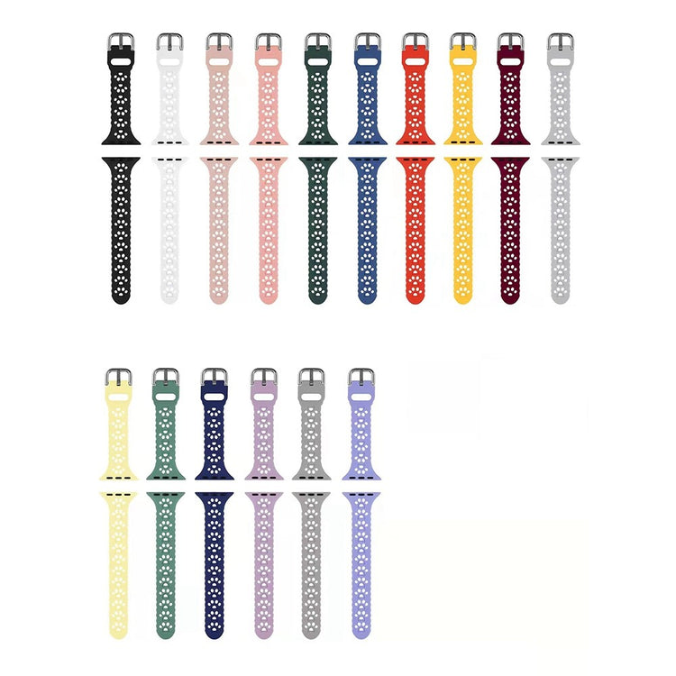 Tämä silikonista valmistettu ranneke sopii useisiin Apple Watch -malleihin ja tuntuu mukavalta ranteessa. Kissan tassun muotoiset reiät tekevät rannekkeesta tyylikkään ja helpottavat koon säätöä. Sopii niin arkeen kuin juhlaan, miehille ja naisille.