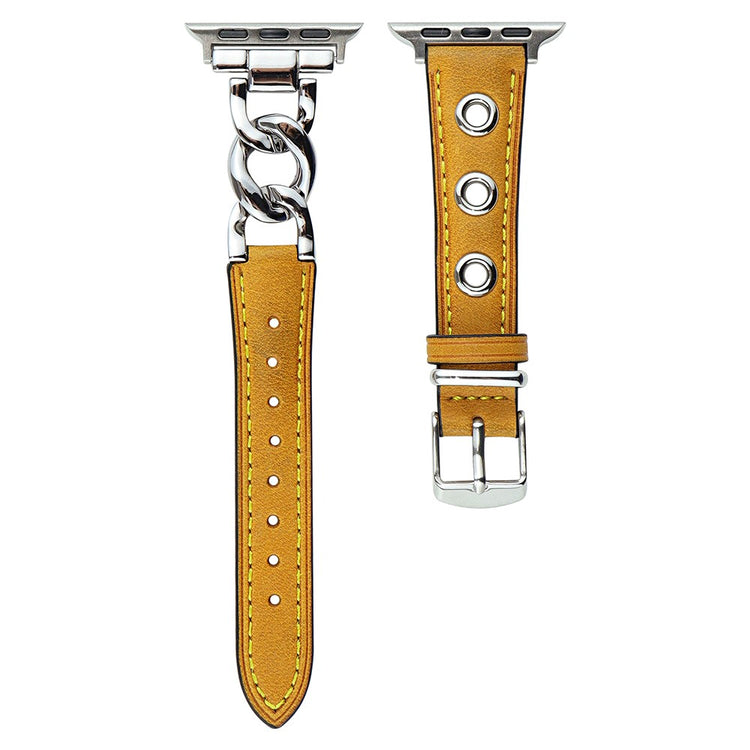 Hanki itsellesi aitoa naudannahkaa olevan rannekkeen, joka on suunniteltu erityisesti Apple Watch Series 9 / 8 / 7 41mm / 6 / 5 / 4 / SE / SE (2022) / SE (2023) 40mm / 3 2 1 38mm -älykelloille. Tämä korkealaatuisesta materiaalista valmistettu ranneke on mukava käyttää ja se lisää tyyliäsi. Sen ketjumuotoinen design kolmoisulokkeineen tekee siitä sekä trendikkään että näyttävän. Lisäksi, tämän rannekkeen pinnatappi mahdollistaa pituuden helpon säätämisen monireikäisen rakenteensa ansiosta, joten voit löytää juuri sinulle sopivan istuvuuden. Ranneke on täydellinen vaihto rikkoutuneelle rannekkeelle ja se sopii erinomaisesti päivittäiseen käyttöön sekä asusteeksi, joka täydentää asuasi. Valmistettu aidosta naudannahasta, joka takaa sekä kestävyyden että mukavuuden, se on erinomainen valinta jokaiselle älykellon käyttäjälle. Rannekkeen kokovaihtoehdot soveltuvat useimpiin ranteen ympärysmittoihin, eikä sinun tarvitse huolehtia sopivuudesta!