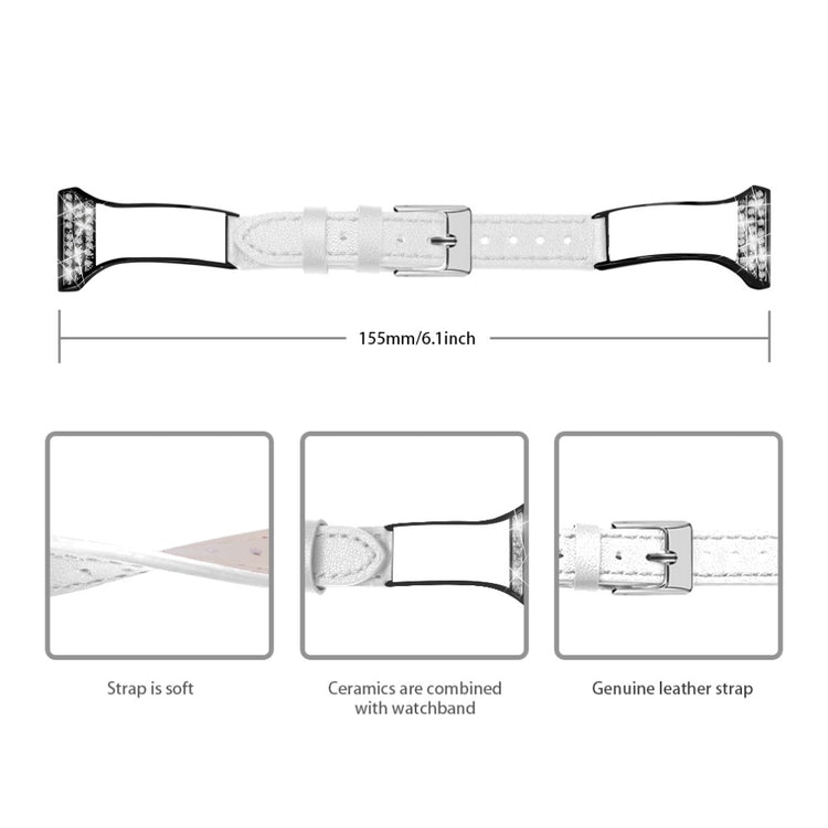 Esittelyssä tyylikäs ja ainutlaatuinen keraaminen ja aito nahka -ranneke, joka on suunniteltu erityisesti Fossil Gen 5 Julianna -älykelloille. Tämä ranneke yhdistää hienostuneesti korkealaatuisen naudan-nahan ja elegantit rhinestone-koristeet, luoden täydellisen yhdistelmän kestävyyttä ja tyyliä.