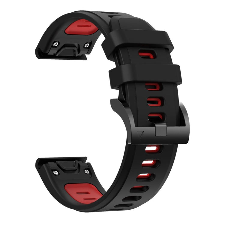 Tämä kaksivärisen silikonista valmistettu ranneke on helppo ja nopea vaihtaa Quick Release -pikakiinnitysmekanismin ansiosta. Pehmeä ja kestävä silikonimateriaali tuntuu mukavalta ranteessa ja useat reiät takaavat täydellisen istuvuuden. Ranneke on yhteensopiva useiden Garmin-älykellojen kanssa, kuten Fenix-, EPIX-, Approach- ja Forerunner-mallien.