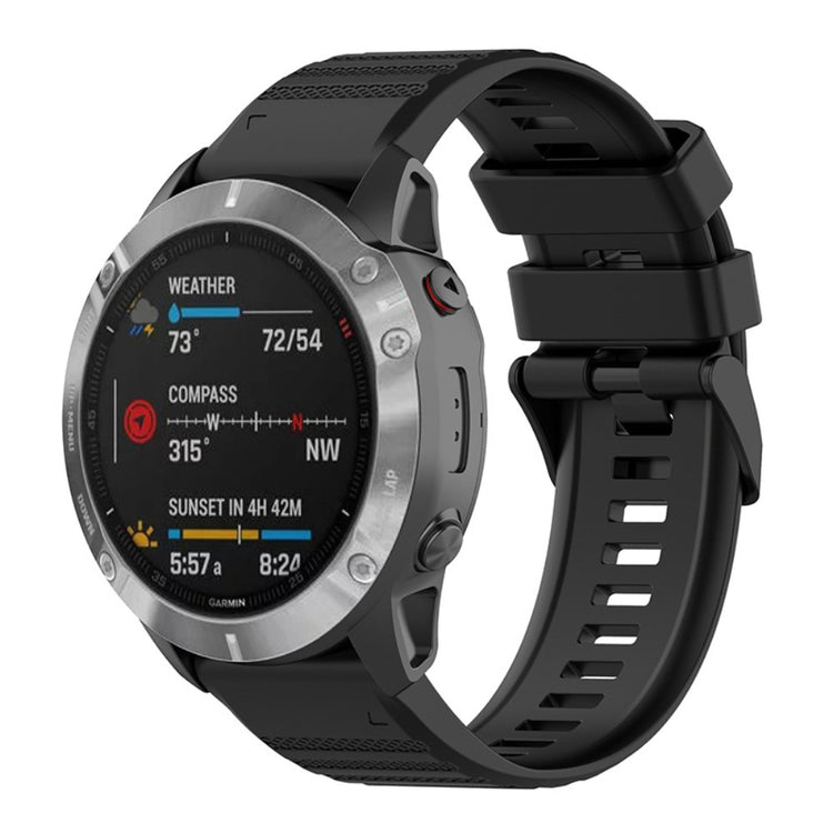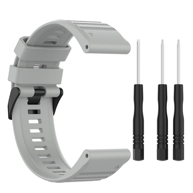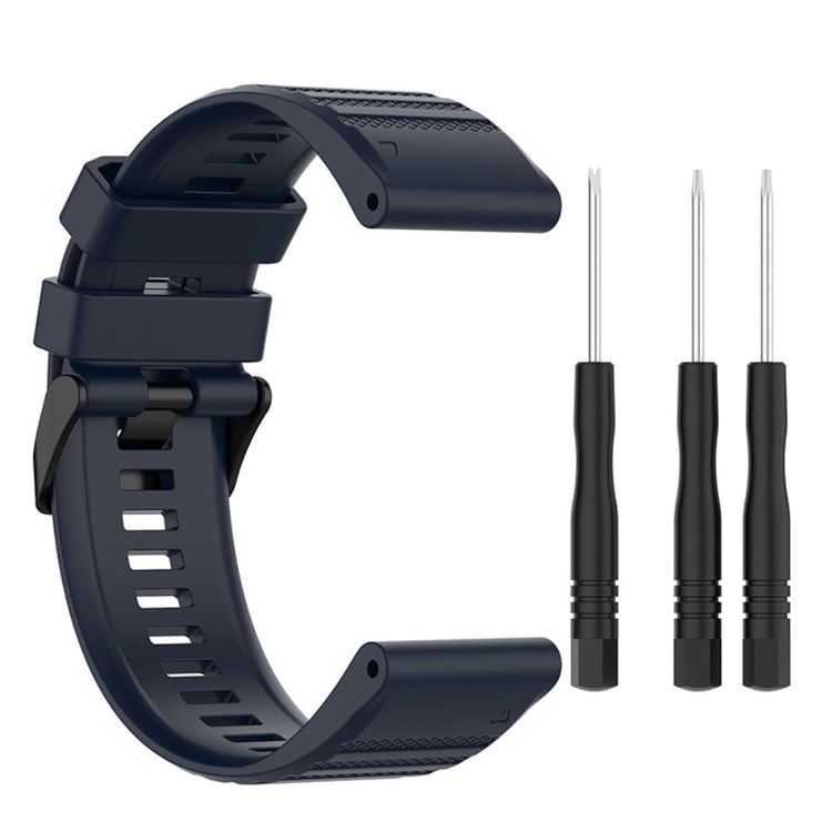 Tämä 22mm silikoniranneke on varustettu ruuvimeisseleillä ja sopii täydellisesti Garmin Fenix 6, Fenix 5 ja muihin Garmin-älykelloihin. Kestävä ja mukava ranneke on valmistettu ympäristöystävällisestä silikonista ja sen kokoa on helppo säätää ranteeseesi sopivaksi. Kaksinkertainen rengassuunnittelu varmistaa, että ranneke pysyy tukevasti paikallaan.