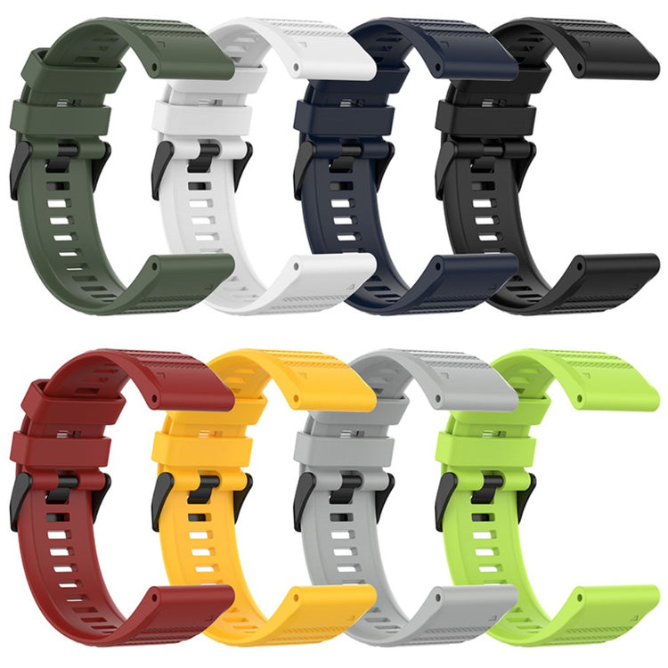 Hanki tyylikästä ja käytännöllistä käyttömukavuutta älykellollesi 22mm silikonirannekkeella, joka on suunniteltu erityisesti Garmin Fenix 6 GPS:n, 6 Pro GPS:n, 6 Sapphire GPS:n, Fenix 5:n ja 5 Plus:n käyttäjille. Säädettävä koko mahdollistaa rannekkeen mukauttamisen juuri sinun käsivarrellesi, mikä takaa optimaalisen istuvuuden ja mukavuuden. Ranneke on valmistettu elintarvikelaatuisesta silikonista, joka on ympäristöystävällinen, pehmeä ja miellyttävän tuntuinen iholla. Uudistettu kaksirenksinen muotoilu pitää rannekkeen tiukasti paikoillaan käytön aikana, estäen sen liukumisen ja tarjoamalla lisätukea. Valikoimassamme on useita eri värejä, joten voit valita juuri sinun tyyliisi sopivan vaihtoehdon. Tämä ranneke on yhteensopiva useiden Garmin-mallien kanssa, kuten Garmin approach s60, quatix5 ja MARQ-sarjan kanssa, joten voit olla varma, että se täydentää kelloasi täydellisesti. Muista, että tuote sisältää vain rannekkeen – kello ei sisälly pakettiin. Älä epäröi päivittää älykellosi ulkonäköä ja käyttömukavuutta tällä laadukkaalla rannekkeella!