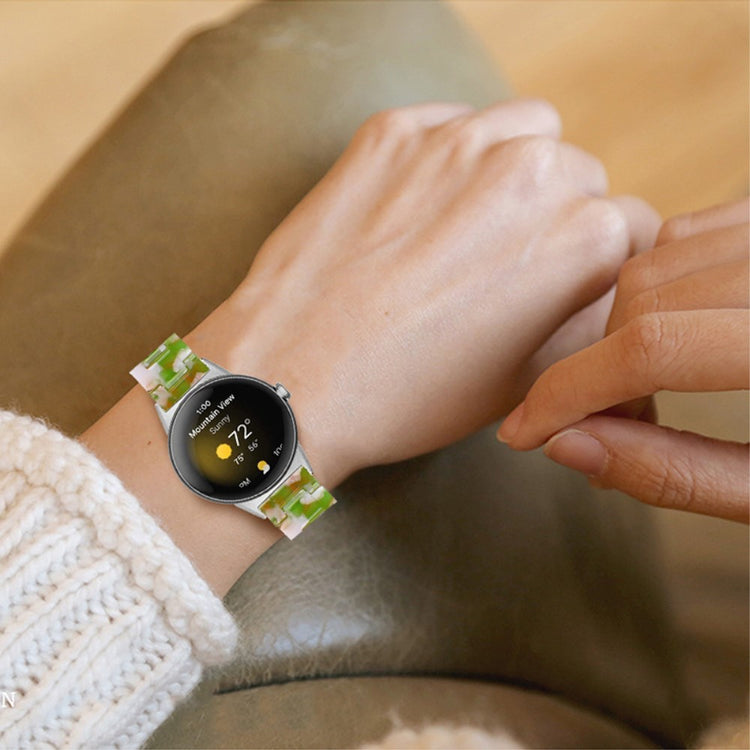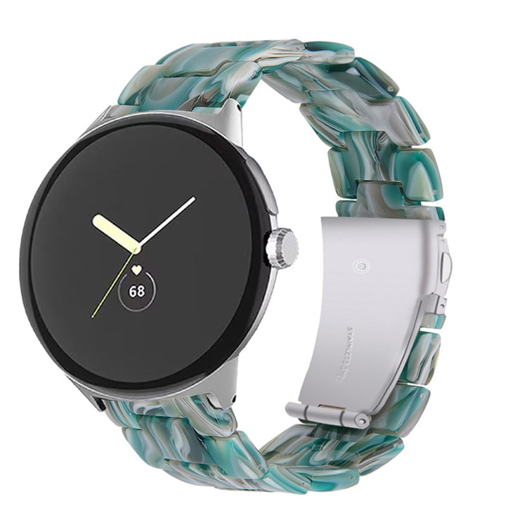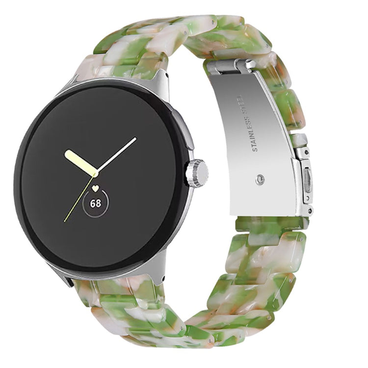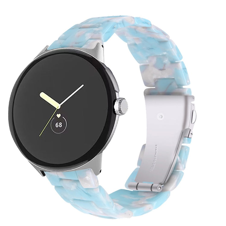 Korvaava ranneke Google Pixel Watch 2:lle ja Pixel Watchille on täydellinen valinta niille, jotka arvostavat laatua ja tyylikkyyttä. Tämä ranneke on valmistettu korkealaatuisesta resiinimateriaalista, joka on sekä veden että ruosteenkestävä, joten voit käyttää sitä huoletta kaikissa sääolosuhteissa. Se sopii ranteisiin, joissa ympärysmitta on 5,5-7,87 tuumaa, ja sen erityisesti käsin kiillotetut materiaalit tekevät siitä erottuvan ja kestävän. Resiinirannekkeessa on myös kaksipainike-turvalukitus, joka takaa, että se pysyy tukevasti paikallaan. Kolmehelmaisen resiinirannekkeen ja ruostumattomasta teräksestä valmistetun adapterin ansiosta saat helposti vaihdettua rannekkeen ilman vaivannäköä. Tämä ranneke on erityisen sopiva tilaisuuksiin, kuten tapaamiset, juhlat, matkat, ja liiketoiminta-tilaisuudet, jolloin haluat näyttää parhaalta. Valitse tämä ranneke ja nosta älykellosi ilme entisestään!