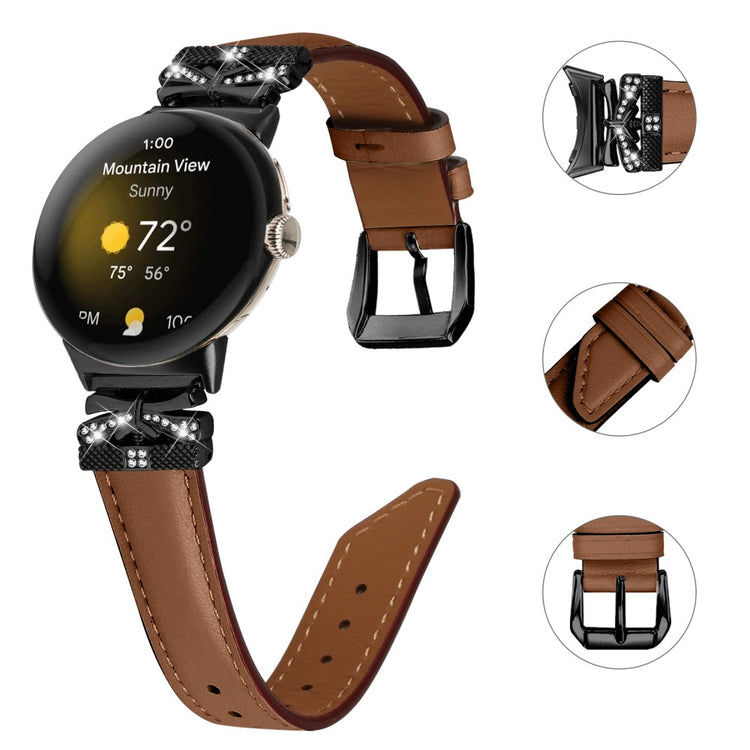 Älä jää ilman tätä upeaa ranneketta, joka on suunniteltu erityisesti Google Pixel Watch ja Watch 2 -älykelloille. Tämä ranneke on valmistettu korkealaatuisesta aidoista naudannahasta, mikä takaa mukavan käytön koko päivän ajan. Sen perhosmuotoinen liitin ja kiiltävät strassit tekevät älykellostasi entistä kauniimman ja tyylikkäämmän. Rannekkeessa on monipuolinen reikämalli, jonka ansiosta voit helposti säätää sen kokoa omien mieltymystesi mukaan. Laadukas ruostumattomasta teräksestä valmistettu solki lisää rannekkeen kestävyttä, joten se on täydellinen vaihto vanhalle, rikkinäiselle rannekkeellesi. Olipa kyseessä työpäivä, vapaa-aika tai muu arkipäivän tilaisuus, tämä ranneke on erinomainen valinta joka hetkeen. Luo oma ainutlaatuinen tyyli ja nauti älykellosi käytöstä!