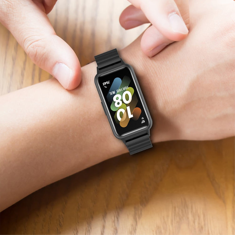 Tämä kestävästä ruostumattomasta teräksestä valmistettu ranneke on tyylikäs ja käytännöllinen lisävaruste Huawei Band 7 -älykelloosi. Se on helppo vaihtaa ja sopii sekä arkeen että juhlaan. Rannekkeen pituus on säädettävissä, joten se sopii useimmille ranteille.