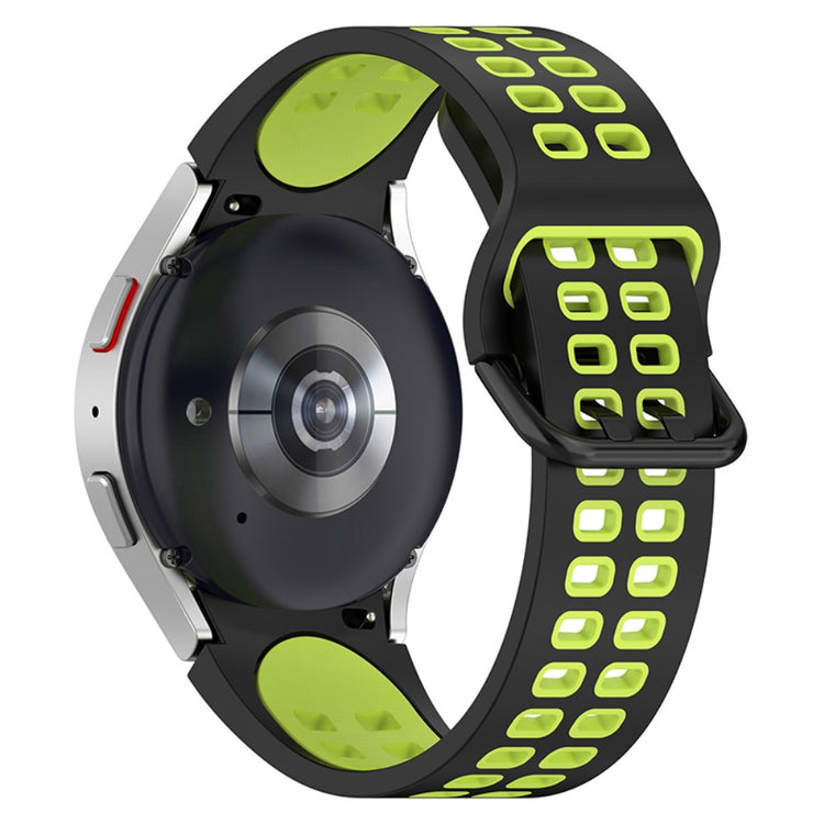 Tämä silikoninen ranneke sopii useisiin Samsung Galaxy Watch -älykelloihin ja se on helppo yhdistää eri asuihin. Kestävästä materiaalista valmistettu ranneke on miellyttävä käyttää ja sopii herkällekin iholle. Useiden reikien ansiosta kokoa on helppo säätää ja ranneke sopii niin arkeen kuin juhlaan.