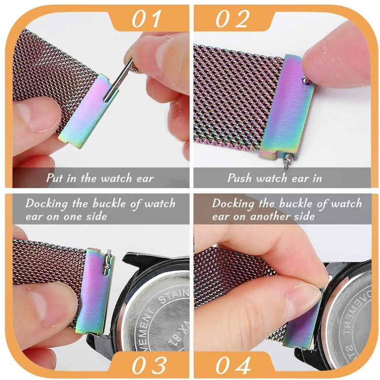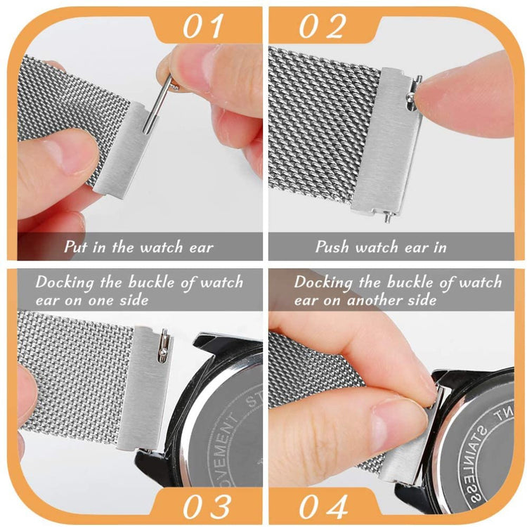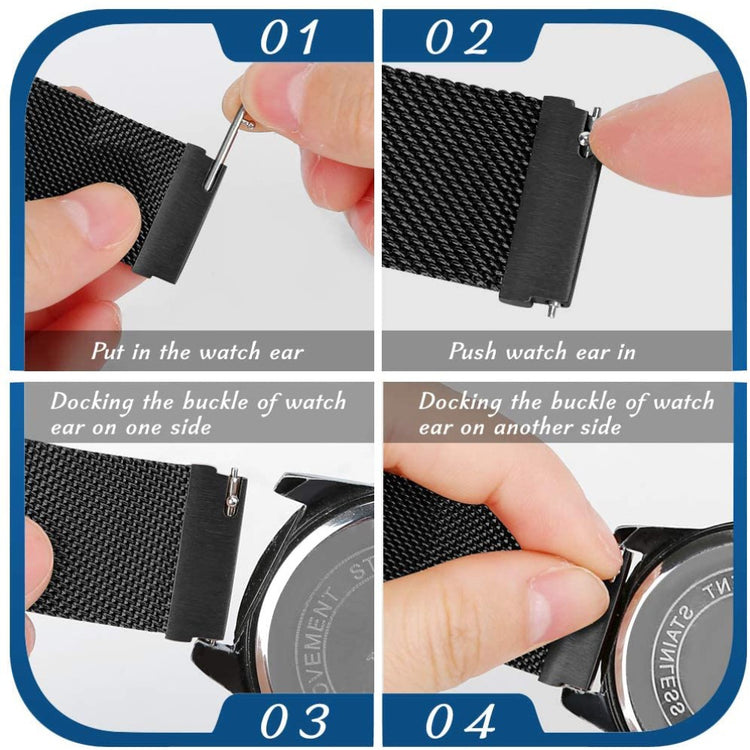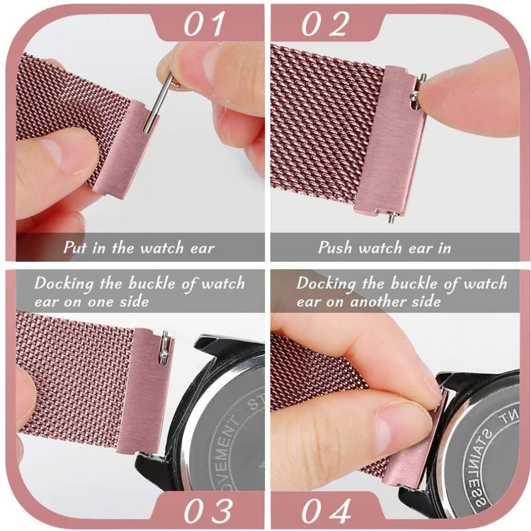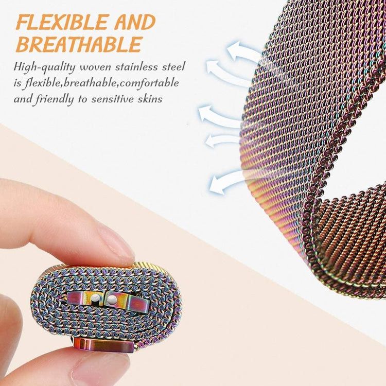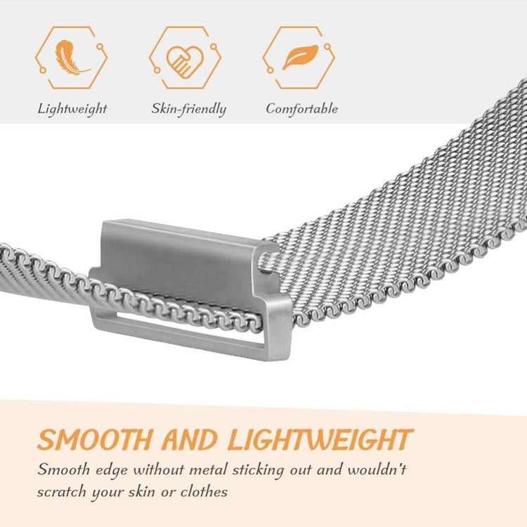 Tämä Milaneeseteräksinen ranneke älykellolle on valmistettu ensiluokkaisesta ruostumattomasta teräksestä ja siinä on magneettinen lukitusmekanismi. Rannekkeen koko on säädettävissä useimpiin ranteisiin sopivaksi. Se on ihanteellinen vaihtoehto vanhalle tai rikkoutuneelle rannekkeelle ja sopii useisiin Samsung-, Huawei-, Garmin-, Ticwatch- ja muihin älykelloihin.