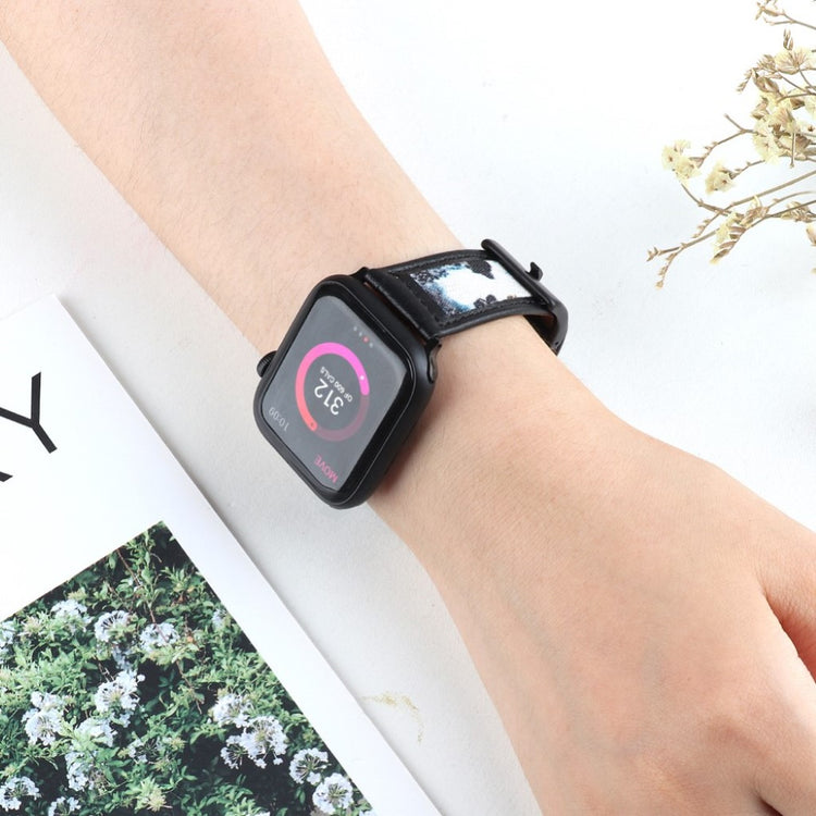 Tämä kauniisti kuvioitu ranneke sopii Apple Watch -älykelloille ja antaa sille yksilöllisen ilmeen. Korkealaatuinen nahkamateriaali on pehmeää ja kestävää, joten ranneke on mukava käyttää. Useiden reikien ansiosta kokoa on helppo säätää, ja rannekkeen kiinnitys ja irrotus on vaivatonta.