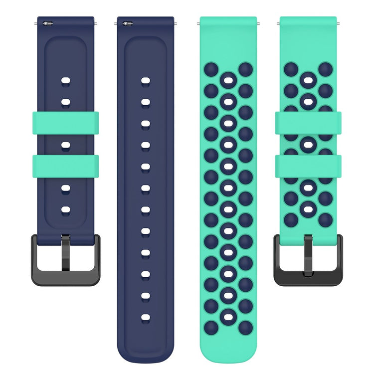 20mm Universal double color and holes design silicone watch strap - Teal / Midnight Blue#serie_9