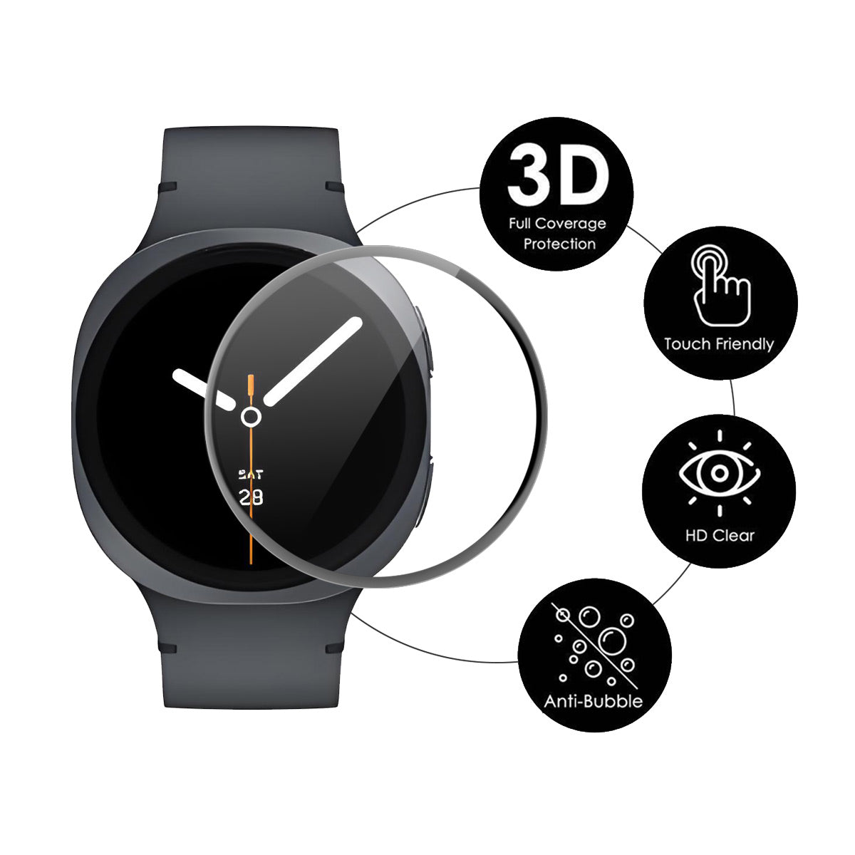 Samsung Galaxy Watch8 44mm Silikoni 3D Kaareva Suojakalvo
