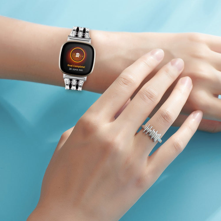 Tämä korkealaatuisesta sinkkiseoksesta valmistettu ranneke Fitbit Versa 4 / Sense 2 -älykelloille on sekä kestävä että tyylikäs. Kolme riviä kimaltelevia strasseja tekevät siitä ainutlaatuisen ja persoonallista ilmettä hakevalle täydellisen. Ranneke on miellyttävän tuntuinen ja sopii erinomaisesti vaihtamaan vanhan tai rikkoutuneen rannekkeen tilalle.